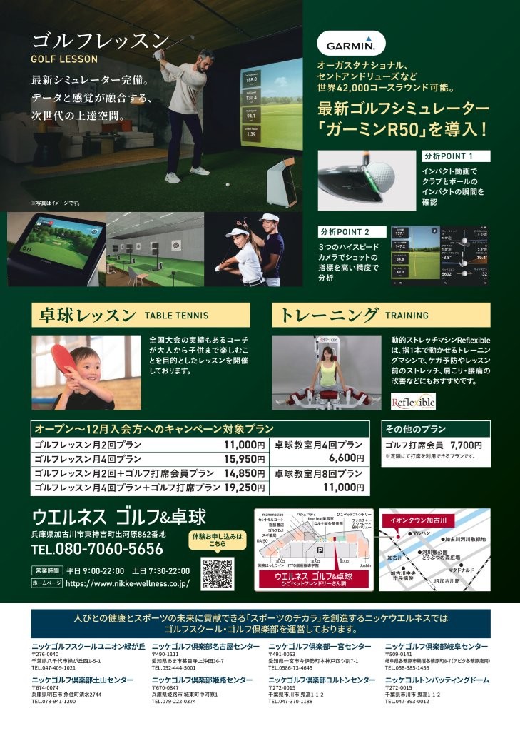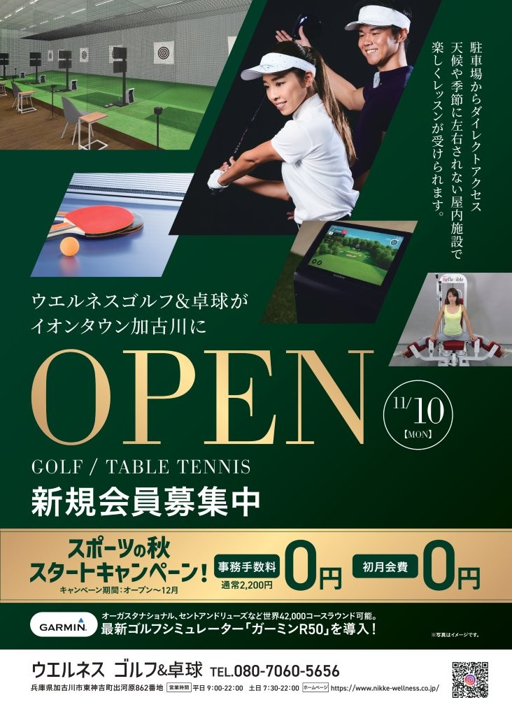 イオンタウン加古川内に、ウエルネス ゴルフ&卓球を新規オープンいたしました。